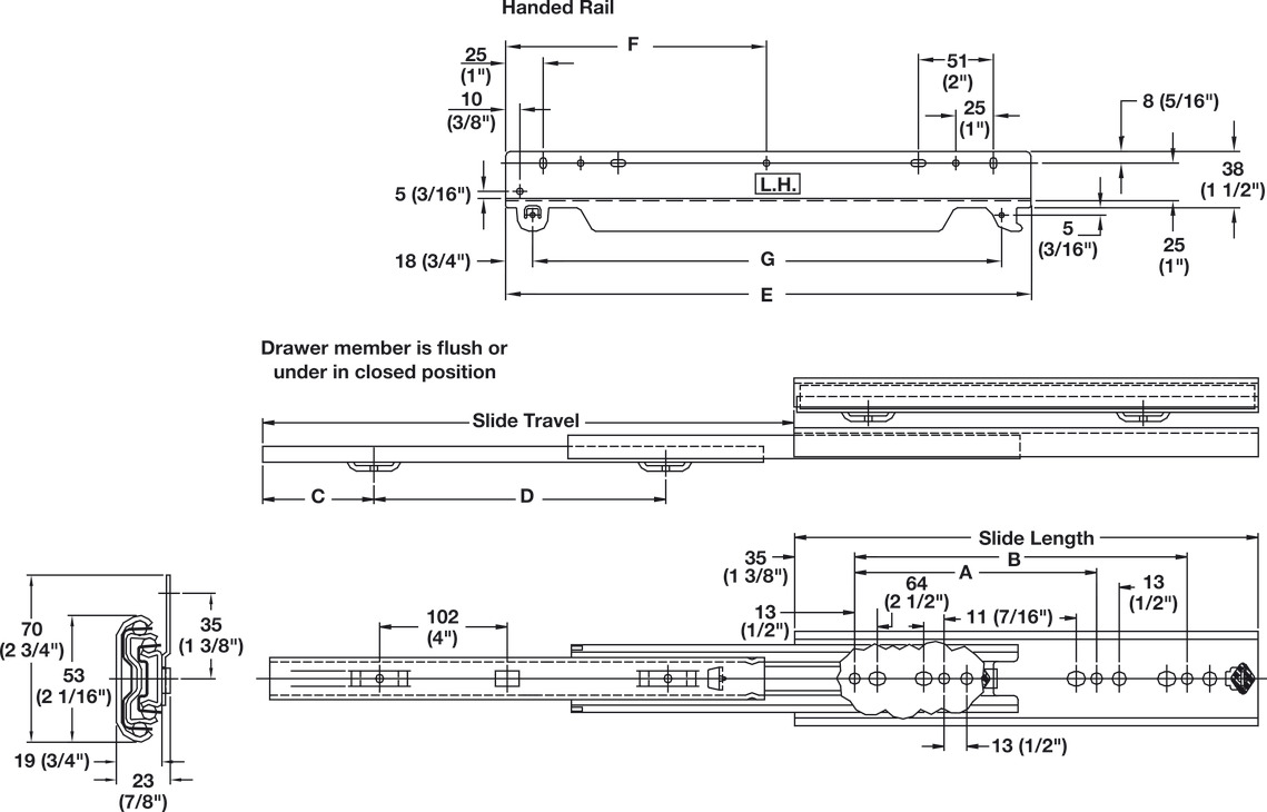 Category: Accuride 3640A Telescopic Heavy Duty Side/Bottom Mounted Slide, 1" Overtravel; 75/200 lbs Weight Capacity,