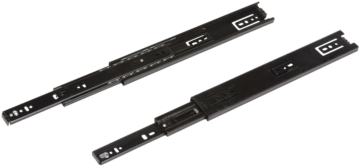 Hafele 422.16.713 Accuride 3834 Telescopic Side Mounted Cam Adjust Slide, 1" Overtravel, 90 lbs Weight Capacity Black, 28"