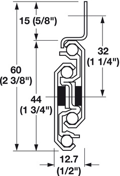 Hafele 422.29.932 Accuride 7432 Progressive Side Mounted Slide, Full Extension, 100 lbs Weight Capacity X pack, zinc, 12"
