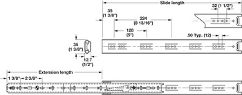 Hafele Accuride 2132 Side Mounted Cam Adjust Slide, 3/4 Extension, 75 lbs Weight Capacity, Bulk pack, 22" length, Item# 422.32.956, 42232956, 422-32-956Zoom