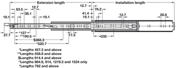 Hafele 422.33.863 Ball Bearing Runners, Full Extension, Accuride 9308, Side/Surface Mounted, Weight Capacity 500 lbs for right hand use, length: 610 mm, installation: For right hand use only 9308