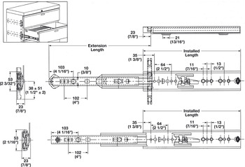 Hafele 422.45.937 Accuride 3641/3642 Side Mount, Interlocking Drawer System, 1" Overtravel; 180 lbs Weight Capacity 17"
