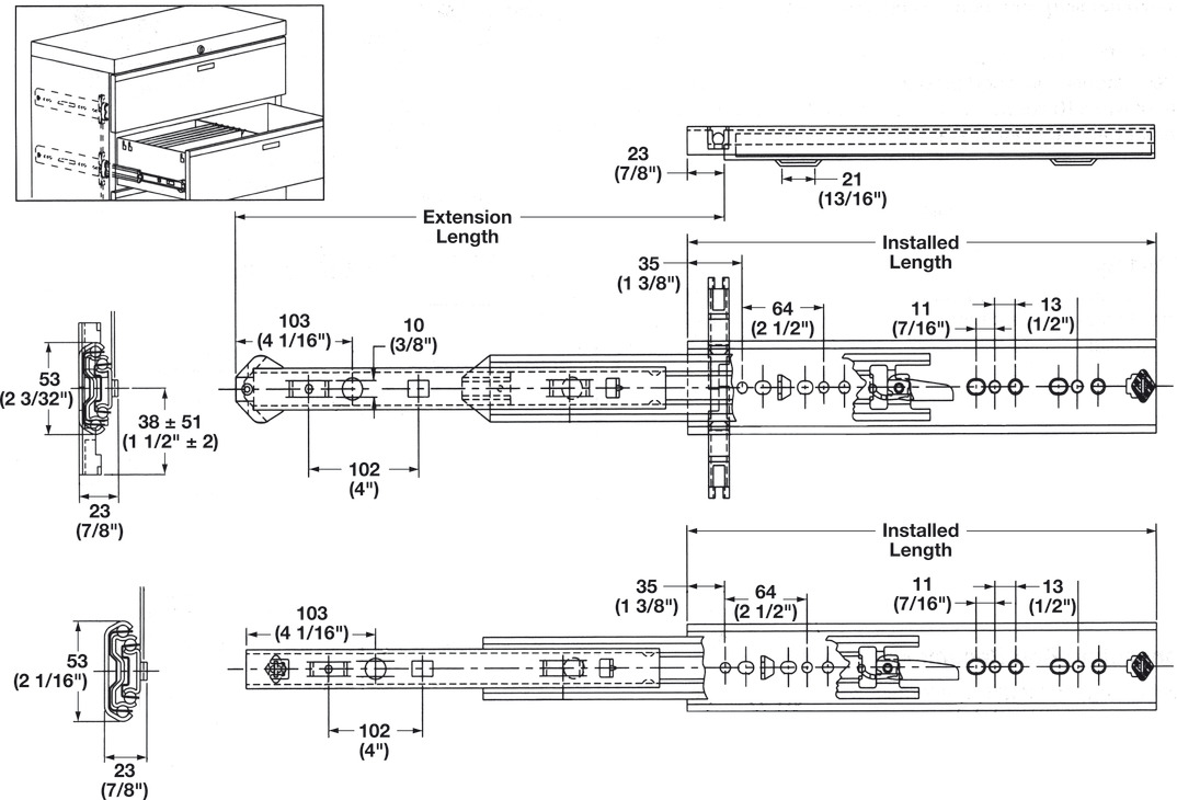 Category: Accuride 3641/3642 Side Mount, Interlocking Drawer System, 1" Overtravel; 180 lbs Weight Capacity,