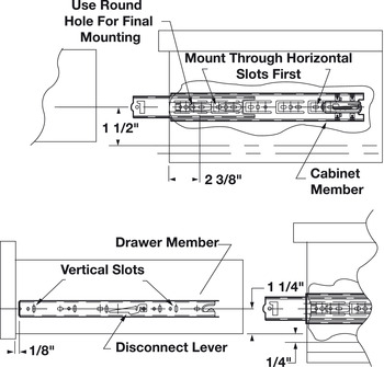 - Version : Can be disengaged using release leverFeatures low profile for shallow drawers