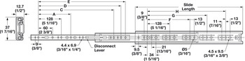 Hafele 422.88.942 Accuride 3732 Side Mounted Slide, Full Extension, 100 lbs Weight Capacity Zinc, 15 3/4" installed length, 16" travel length, FB pack