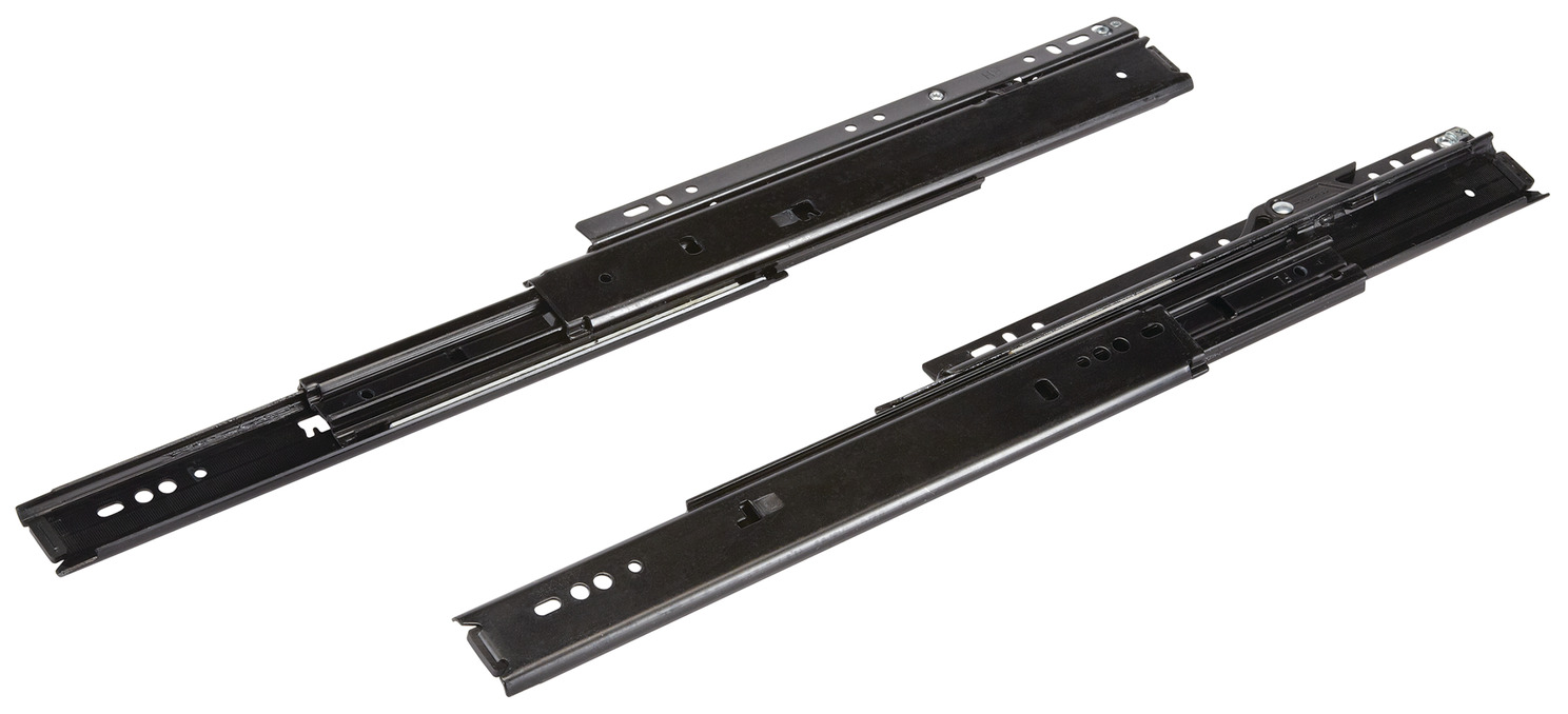 Hafele 422.93.345 Accuride 7434 Progressive Side Mounted Slide, 1" Overtravel; 100 lbs Weight Capacity Shop pack, black, 18" installed length, 19" extension length, 13 1/16" rail length