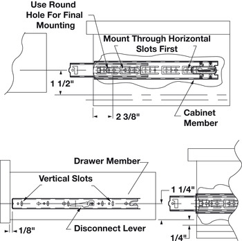 - Installation : For optimal performance make drawers 1 1/16†(27 mm) less than cabinet openingData Sheet