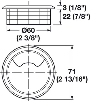 Category: Plastic Cable Grommet, Two-Piece, Round, Ø60 mm, For workplace organization