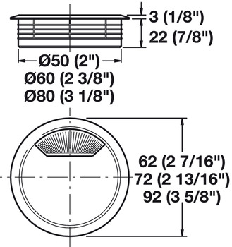 Category: Plastic Cable Grommet, Two-Piece, Round with Spring Closure, Plastic, with spring loaded, swivelling section in cover, for workplace organization