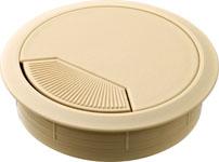 Product Title: Plastic Cable Grommet, Two-Piece, Round with Spring Closure, Plastic, with spring loaded, swivelling section in cover, for workplace organization, Beige, Diameter:80 mm