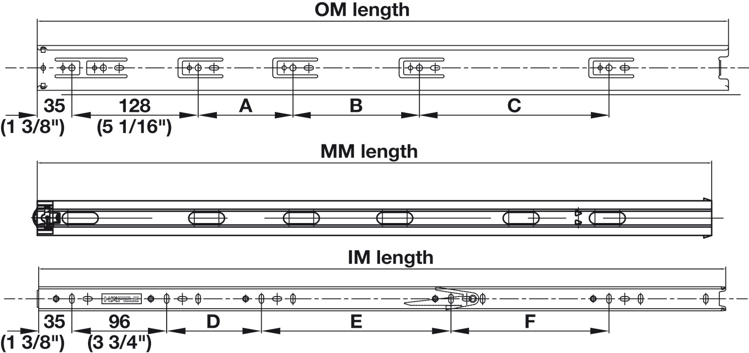 - Hold-in detent secures drawer in fully closed position; prevents drawer from creeping open