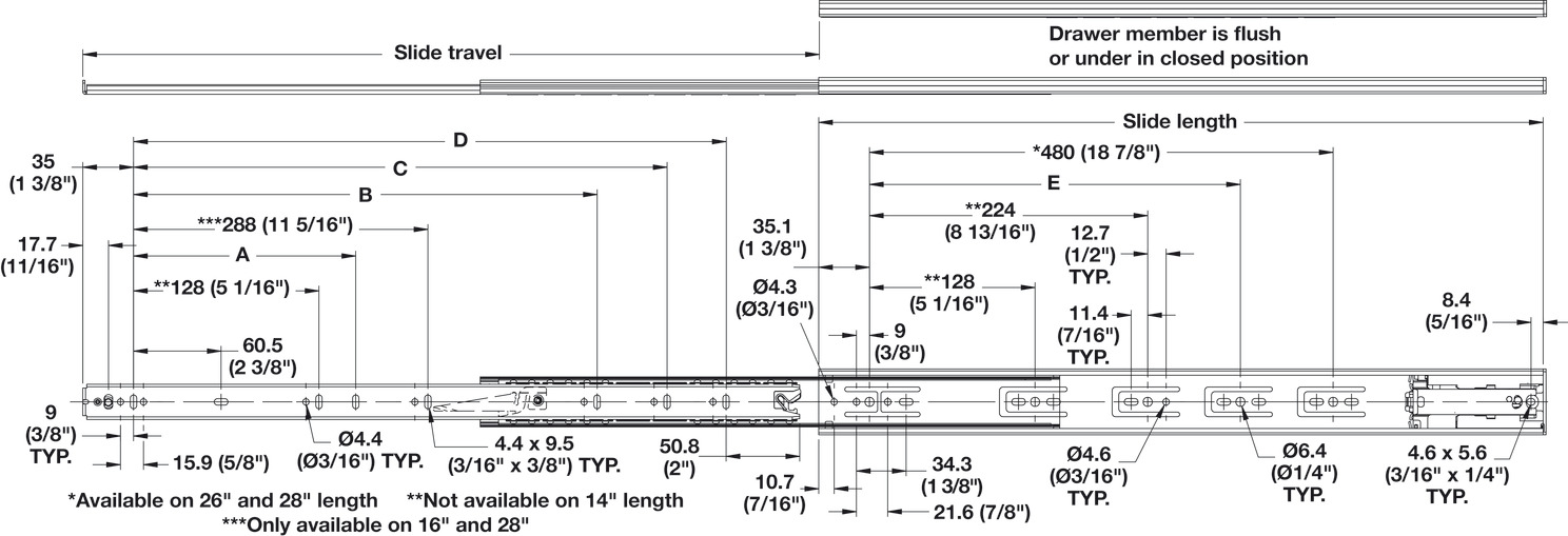 - Area of application : For drawers: max. 406 mm (16") wideNot intended for lateral file drawer applications