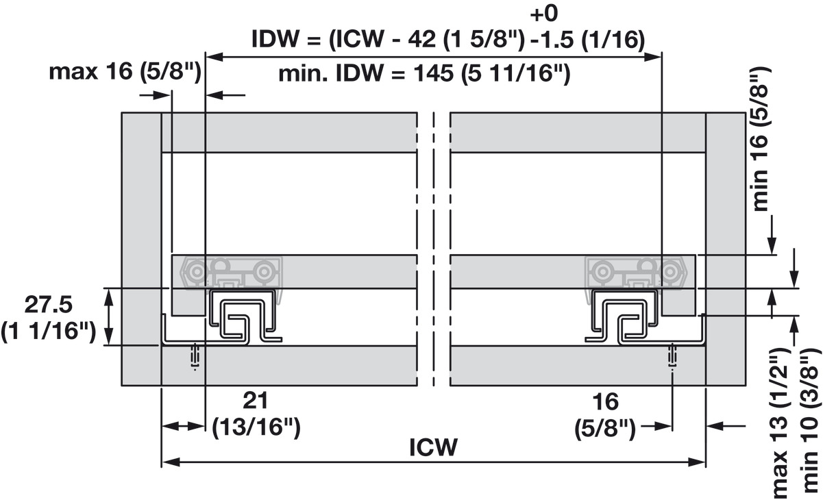 Product Title: Concealed Drawer Slide, for Base Panel Mounting, Full Extension, Dynapro 40 kg, With integrated liquid Soft-close , 22" length