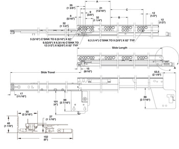 - For drawers up to 41†to 60†wide with included cable system and Wide Drawer stabilizer kit, order separately.