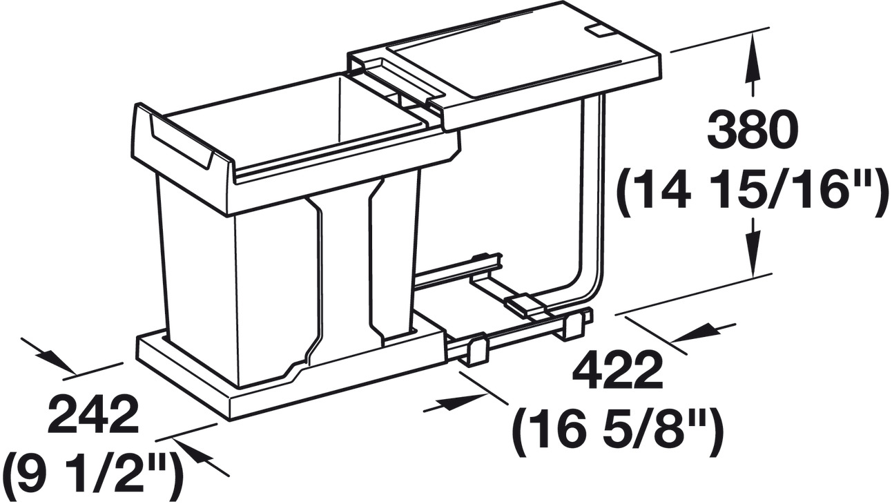 - Features integrated lid; as the bin is pulled out the lid tilts automatically