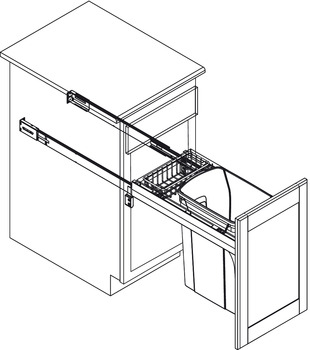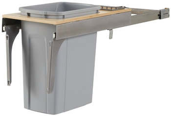 Hafele 503.11.532 Waste Bin Pull-Out, KV Wood Frame, Side Mount, Single, Depth is 23 3/16" Frosted nickel, capacity: 35 qt.
