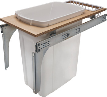 Product Title: Waste Bin Pull-Out, KV Wood Frame, Side Mount, Single, Depth is 22 1/2", Capacity: 35 qt.
