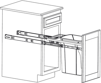 Product Title: Waste Bin Pull-Out, KV Wood Frame, Side Mount, Single, Depth is 22 1/2", Capacity: 35 qt.
