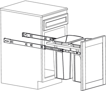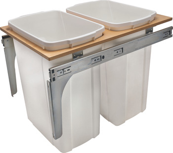 Product Title: Waste Bin Pull-Out, KV Wood Frame Side Mount, Double, Depth is 22 1/2", (W x H) 381 x 445 mm