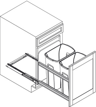 Category: Waste Bin Pull-Out, KV Bottom Mount, Double, 50 Qt, Undermount Slide with Soft-Close,
