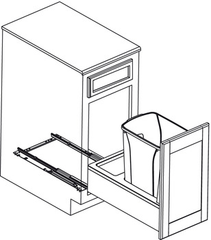 Category: Waste Bin Pull-Out, KV Wood Frame, Bottom Mount, Single, Depth is 22 3/8",