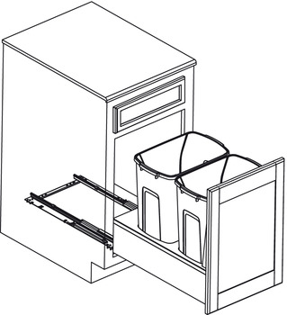 Category: Waste Bin Pull-Out, KV Wood Frame, Bottom Mount, Double,