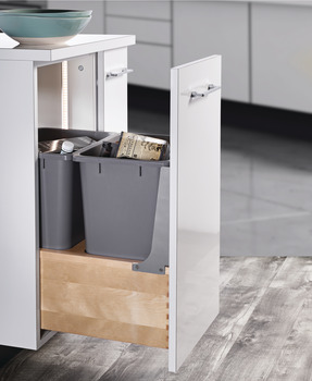 Category: Waste Bin Pull-Out, Wood Frame, Bottom Mount, Single, with Grass Elite Undermount Slides, with soft close