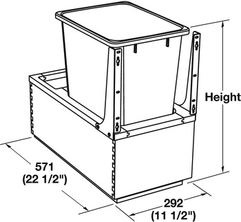Hafele 503.88.852 Waste Bin Pull-Out, Wood Frame, Bottom Mount, Single, with Grass Elite Undermount Slides with soft close, 36 qt
