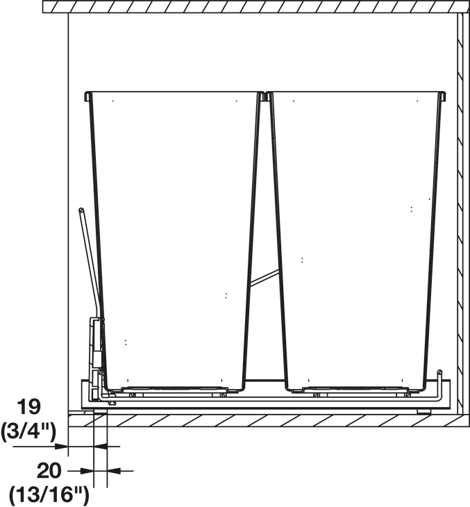 Hafele 503.88.971 Trash Can, double 36qt, bottom mounted, soft close, steel, chrome, 14 1/8" x 21 3/4"