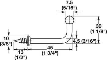 Product Title: Ball Point Hook, Fits into 4 mm Holes, Chrome-plated; 1 3/4" projection