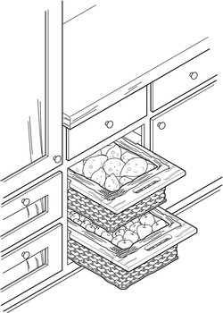 - Installation : Install in or between two cabinetsFor installation, calculate frame width less 6 mm (1/4") for ease of use of runners