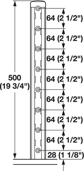 - Shelves height adjustable at intervals of (2") 50 mm via post and side profile
