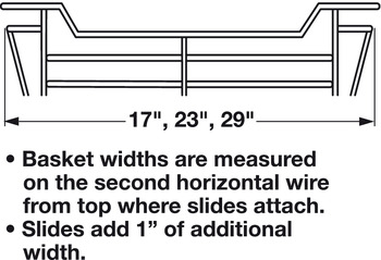 - Basket widths are measured on the second horizontal wire from top
