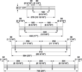 - Installation : Attaches to shelf with press-in dowels that fit 3/16" (5mm) diameter drilled holesDowels are on 1 1/4" (32 mm) center incrementsData Sheet