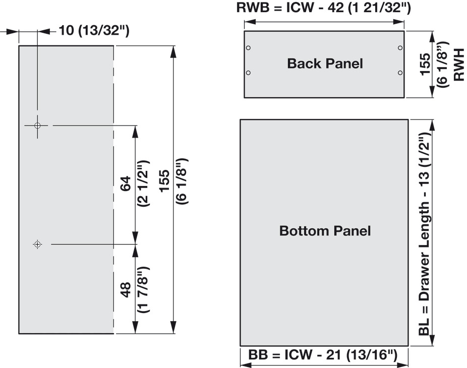 - Front Panel Kits for Grass Vionaro, for Side Height: (7 1/4") 185 mm