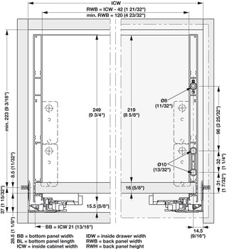 Product Title: Grass Vionaro Drawer System, Side Height: (9 3/4") 249 mm, Graphite, drawer length: 533 mm (21")