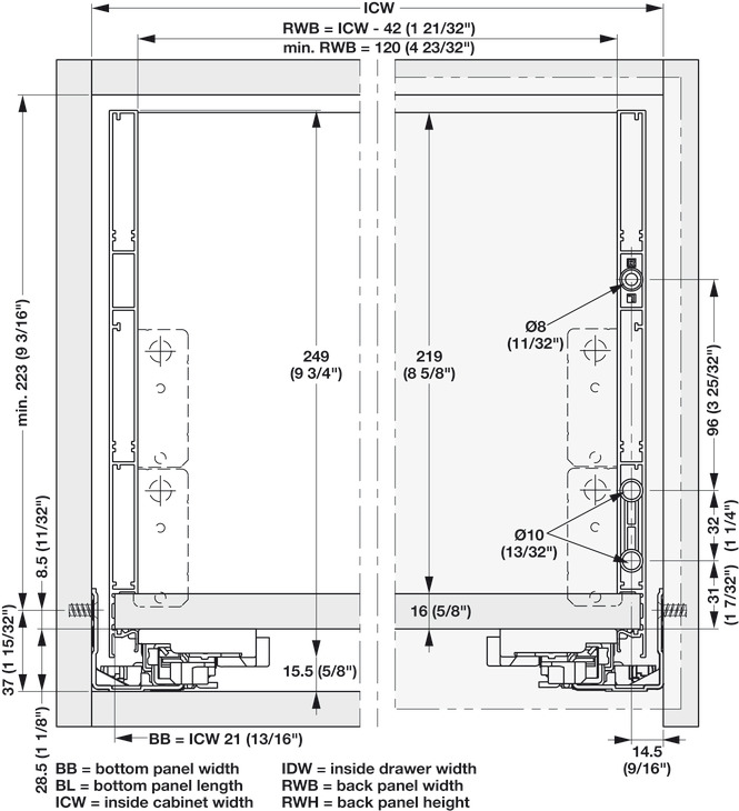 Product Title: Grass Vionaro Drawer System, Side Height: (9 3/4") 249 mm, White, drawer length: 457 mm (18")