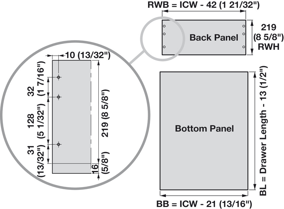 Adapter Set for Grass Vionaro Drawer System, for 185 mm (7 1/4") Side Height (choose one):Graphite