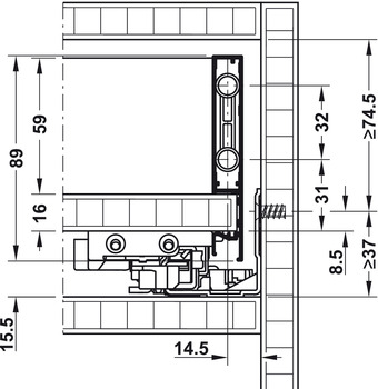 - Installation reference : Installation dimensions: the specifications for internal installation height and installation dimensions of the rear panel are identical to those of the pull out for door front fixing with drawer side height of 185 mm.min. internal installation depth = nominal length + 12 mm