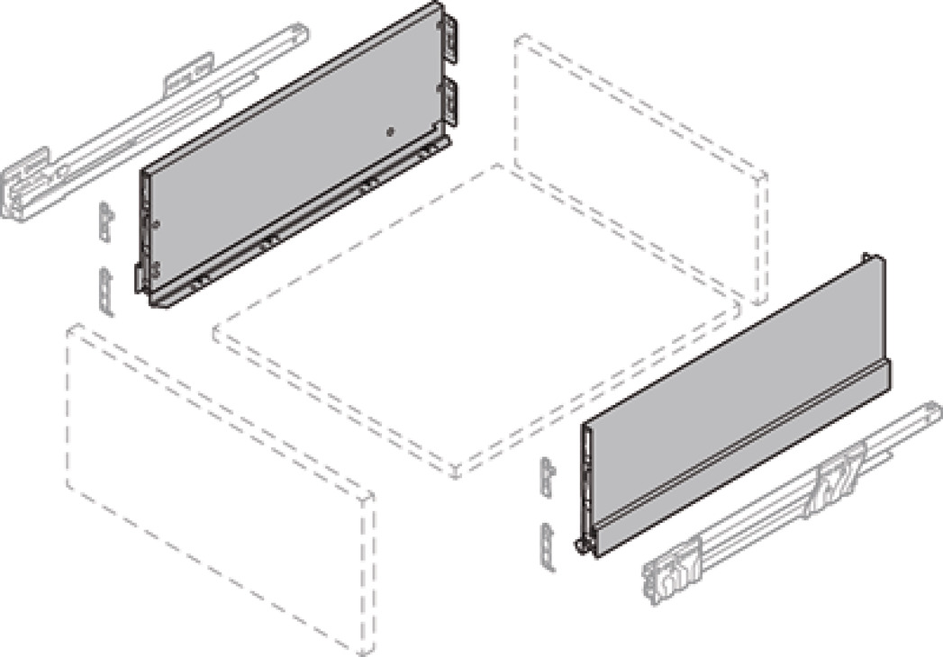 Product Title: Double-Wall Drawer System Frame, Drawer side height 186 mm, Nova Pro Scala, Grass