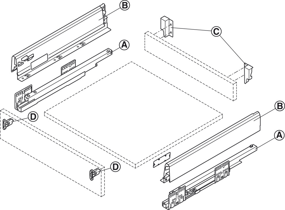 - 1 left and 1 right double-walled rawer side with rear panel fitting