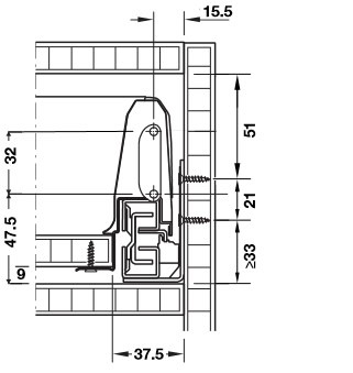 - Drawer side height : 3 5/16"