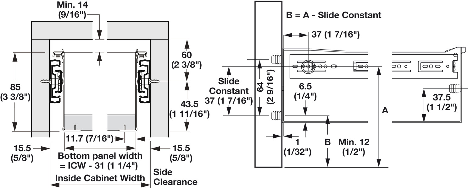 - If face frame, please order 553.31.990 (Rear Socket or Face Frame Rear bracket)