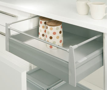 - Area of application : Front panel holder for internal drawer box with railingconnects the drawer sides with the panel and railing