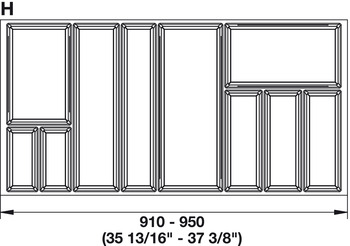 Hafele 556.55.390 Sky Cutlery Tray, for 21" and 21 11/16" Deep Drawer, Plastic state gray; trimmable width: 910 - 950 mm (35 13/16 - 37 3/8")