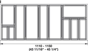 Hafele 556.55.772 Sky Cutlery Tray, for 21" and 21 11/16" Deep Drawer, Plastic textured white; trimmable width: 1110 - 1150 mm (43 11/16 - 45 1/4")