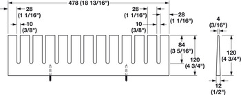 - W x D x H: 18 13/16" x 1/2" x 4 3/4"