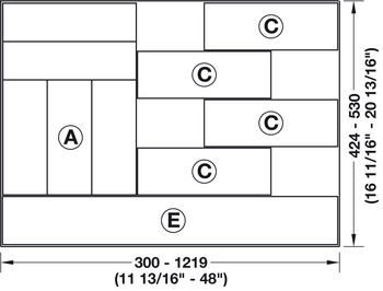 - Compartments can be arranged in a variety of sizes by stepless horizontal movement