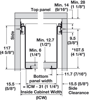 - Allow minimum of 3 mm (1/8â€) for bottom clearance. If screws are used, increase clearance accordingly.