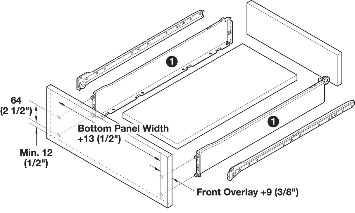 - For min. panel thickness : Back: 5/8"; Bottom: 1/2"